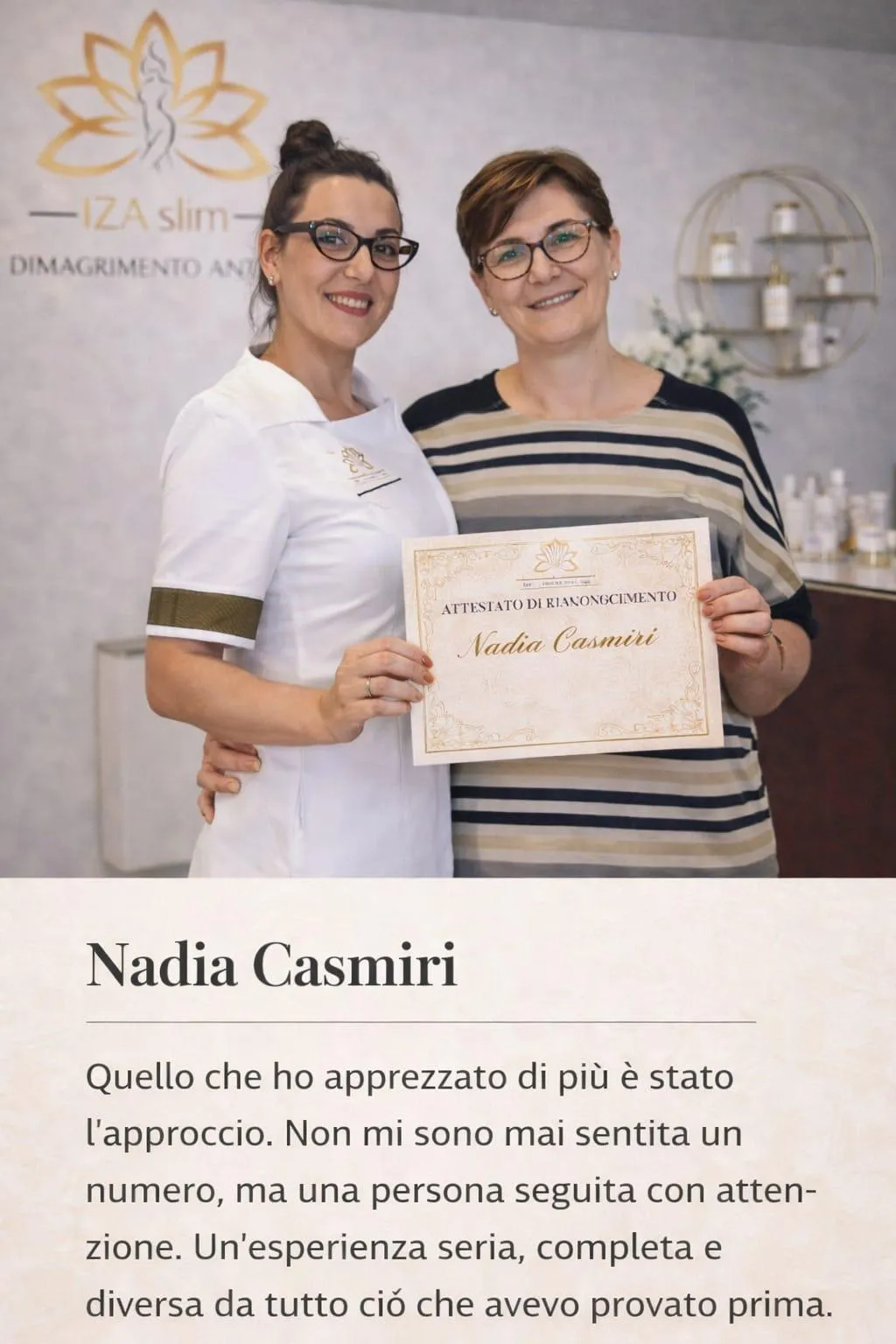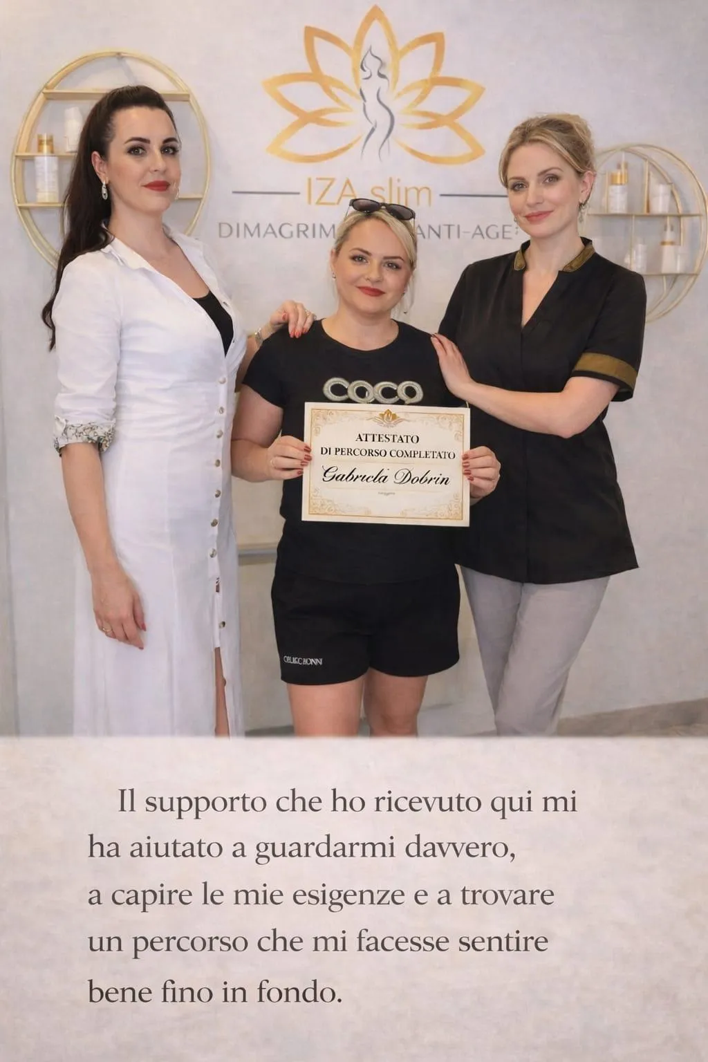 Seguita benissimo dal personale qualificato e motivante ho deciso di intraprendere un percorso a 360 gradi presso IZA slim.